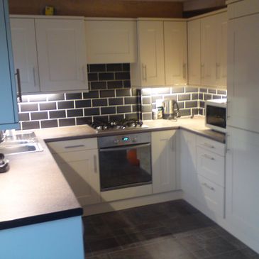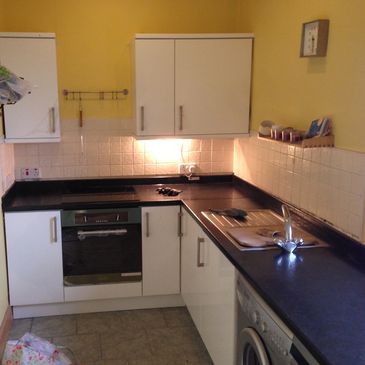 Kitchen installed in Curry, this was a quick low budget upgrade kitchen in a property the client owned. very quirky tap location that was selected.